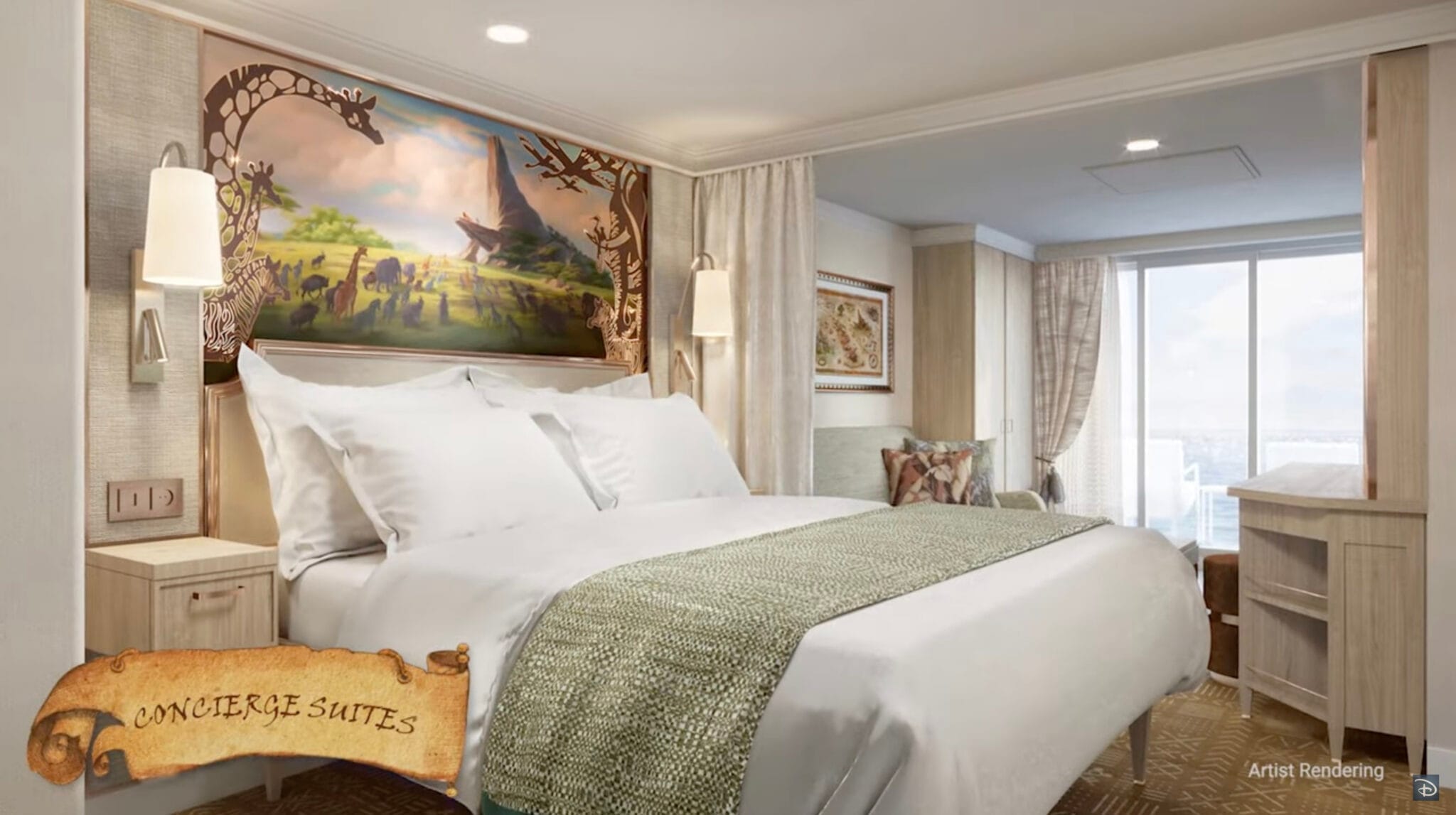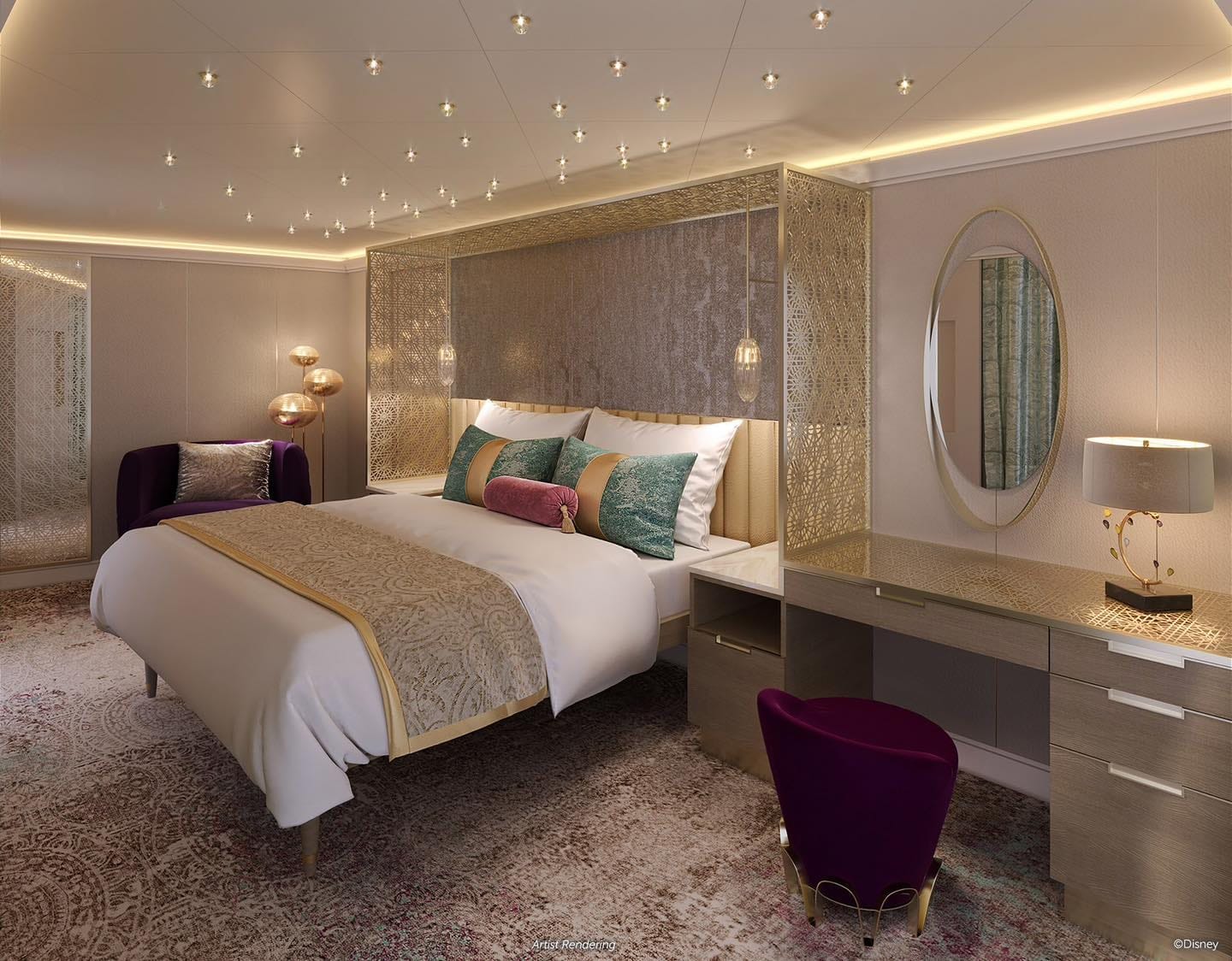 The adventure-inspired accommodations aboard the Disney Treasure will also extend to four royal suites that pay tribute to the faithful feline companions of daring Disney characters from Aladdin and The Jungle Book.